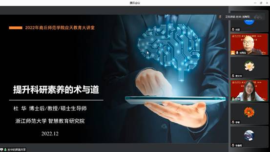 2022年12月22日晚上,为提升学院教师科研能力,我院特邀请浙江师范大学yabo888vip网页版登录杜华教授作了题为《提升科研素养的术与道》的学术讲座,此系“应天教育大讲堂”第四讲。讲座由yabo888vip网页版登录副院长刘海军主持,我校教师教育专业相关师生参加了本次讲座。