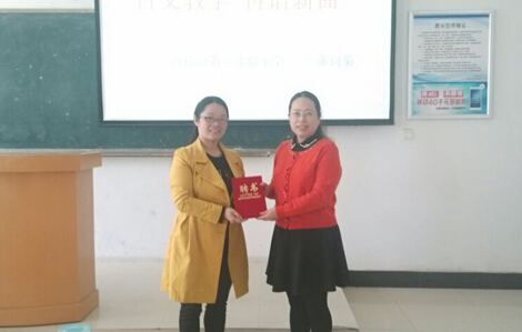 为贯彻省教育厅关于“双导师制”的政策,加快高校教师教育课程改革的进程,推进豫东地区基础教育“博雅名师”创新实验区建设发展,4月17日下午15:30,我院邀请商丘市第一实验小学名师陈向菊,在教学组团楼202举办以“紧扣课标多管齐下 古文教学 再谱新曲”为主题的讲座。我院党总支副书记肖爱芝、双导师负责老师蒯秀丽、杨晴、卢转华出席了本次讲座。 讲座开始前,在蒯老师主持的双导师制聘书授予仪式上,肖书记为陈向菊老师颁发了聘书。