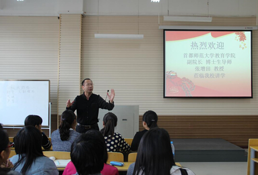◇10月16日,首都师范大学教育科学学院副院长兼博士生导师张增田教授应邀为我院学生干部做报告。报告由秦彧副院长主持。