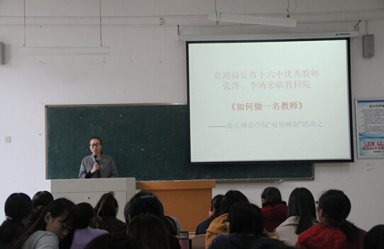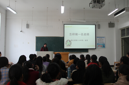 ◇11月3日下午2:30,我院邀请商丘市十六中学优秀教师张萍和李靖在教学组团楼210教室开展了“如何做一名优秀教师”讲座活动。主持人由冯宇红老师担任。