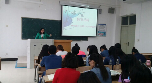 为实施“双导师”制,加强我院学生教学实践中的教学能力,2016年4月28日上午8::00,在教学组团楼202教室,商丘市第十六中名师张萍老师应邀来我院为在校学生举办专题讲座。