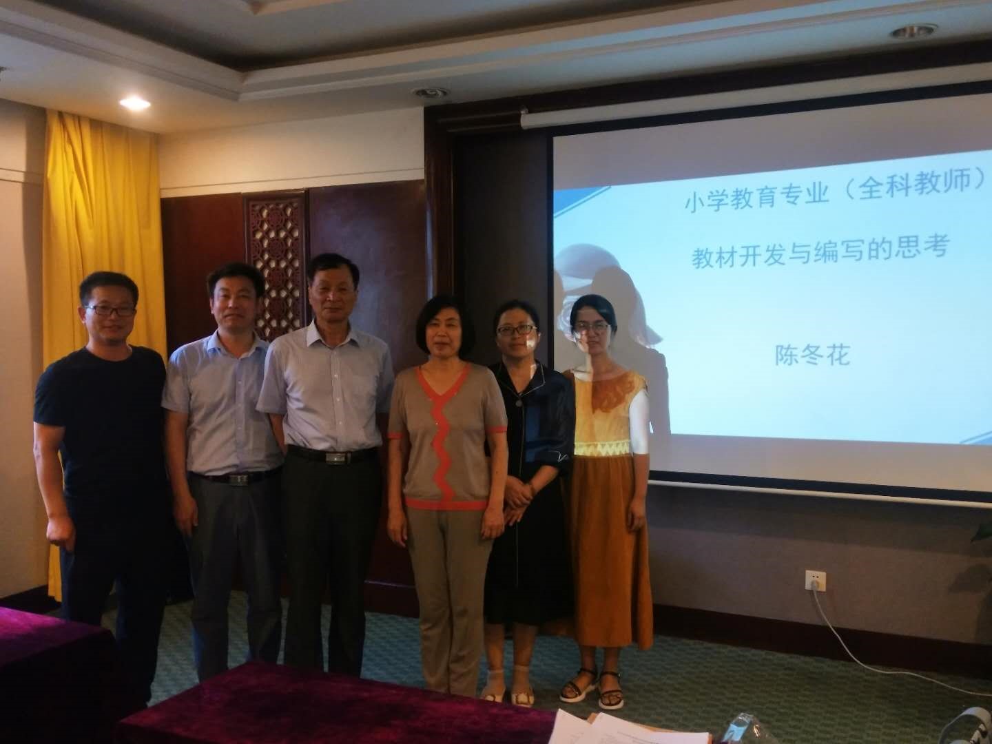 2019年6月27-28日,在省会郑州信息工程大学信息宾馆召开了河南省小学全科教师教材开发编写研讨会。河南省各培养院校参编人员参会。会议主旨是为了落实2019年5月召开的《小学全科教师课程及教学资源建设研讨会》精神,扎实推进我省小学教育全科教师教材的编写工作,进一步落实各项工作,保证教材开发编写工作的顺利进行。会议由郑州师范学院初等教育学院院长陈冬花教授主持。本次会议围绕三个议题进行:1、主编提交教材编写大纲并进行研讨;2、建立教材编写小组;3、主编具体分配编写任务。