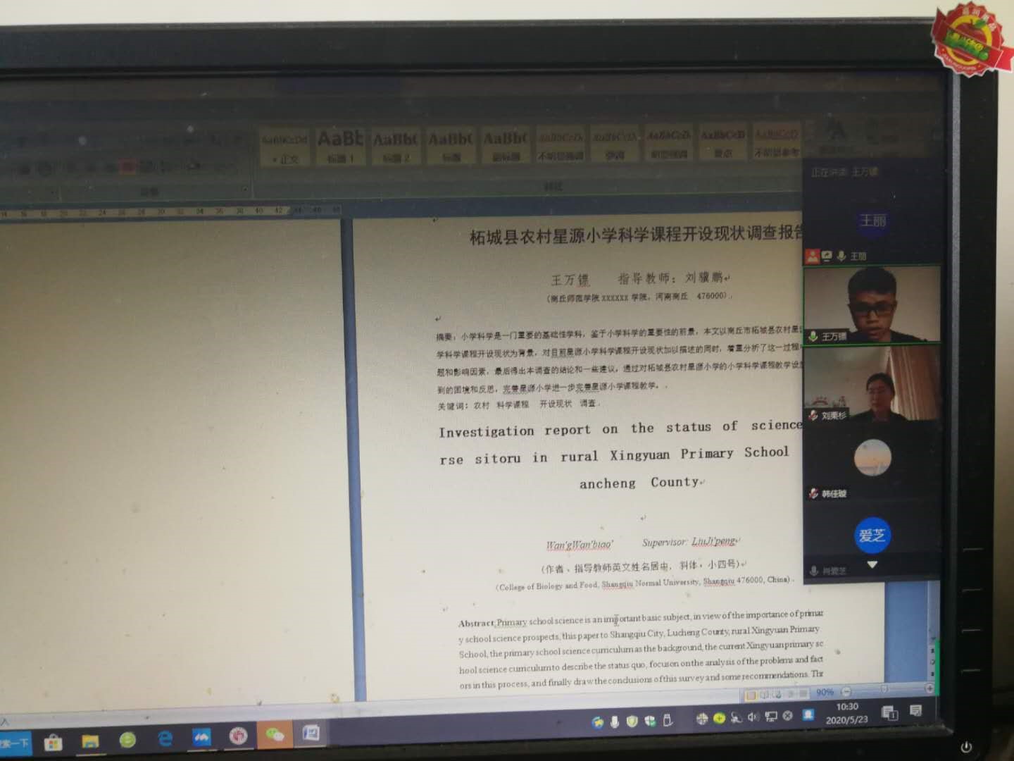 这是我院首次采用线上方式进行答辩,整个答辩工作开展顺利,取得了成功,保证了质量,目前后续工作正有条不紊的进行,疫情的影响被降到了最低。