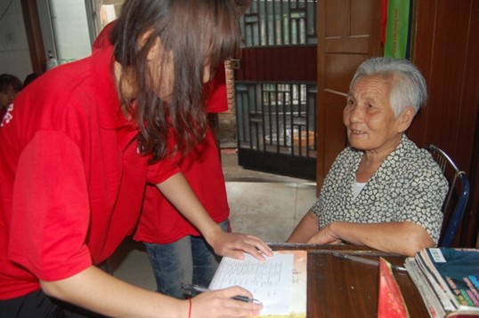 上午9点,队员们按照计划来到了实践活动的首站银苑小区。队员们首先拜访的是一位年逾花甲的女党员。老人家热情的招待消除了队员们的紧张情绪,大家像亲人一样围坐在老人身旁问个不停。在谈话中,老人告诉大家她年轻时就投身党的事业,是一名有50多年党龄的老党员了。对此,老人表示莫大的荣幸和骄傲。同时,老人也感谢党和国家给她现在安稳而幸福的晚年生活。在对老人做完调研之后,队员们下午又走访了小区里其他的老党员们,老人们的故事一次又一次地感动和震撼着队员们。