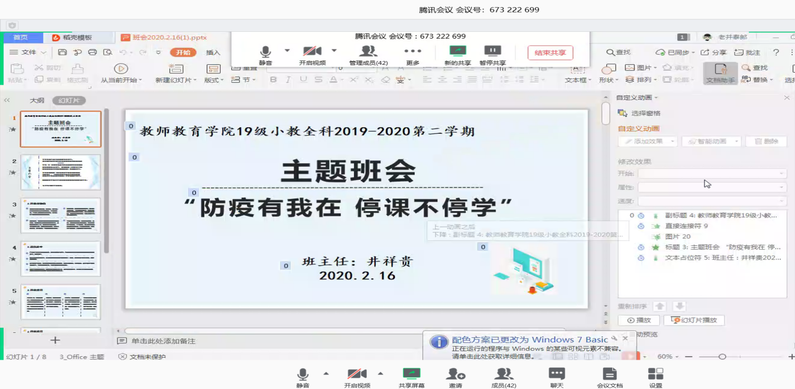 为应对新型冠状肺炎对同学们造成的心理压力,疏导大家的情绪,为学生在家学习奠定良好的心理基础,在学院党总支的号召下,从2月15开始,在一个多星期的时间里,班主任井祥贵副院长带动下,班主任田晶、张焕、刘先华、王红立、刘翠花等老师,利用网络直播的形式,对各年级各专业同学分别进行了多场次以“增强心理能量,有效预防新型冠状病毒”为主题的直播班会。