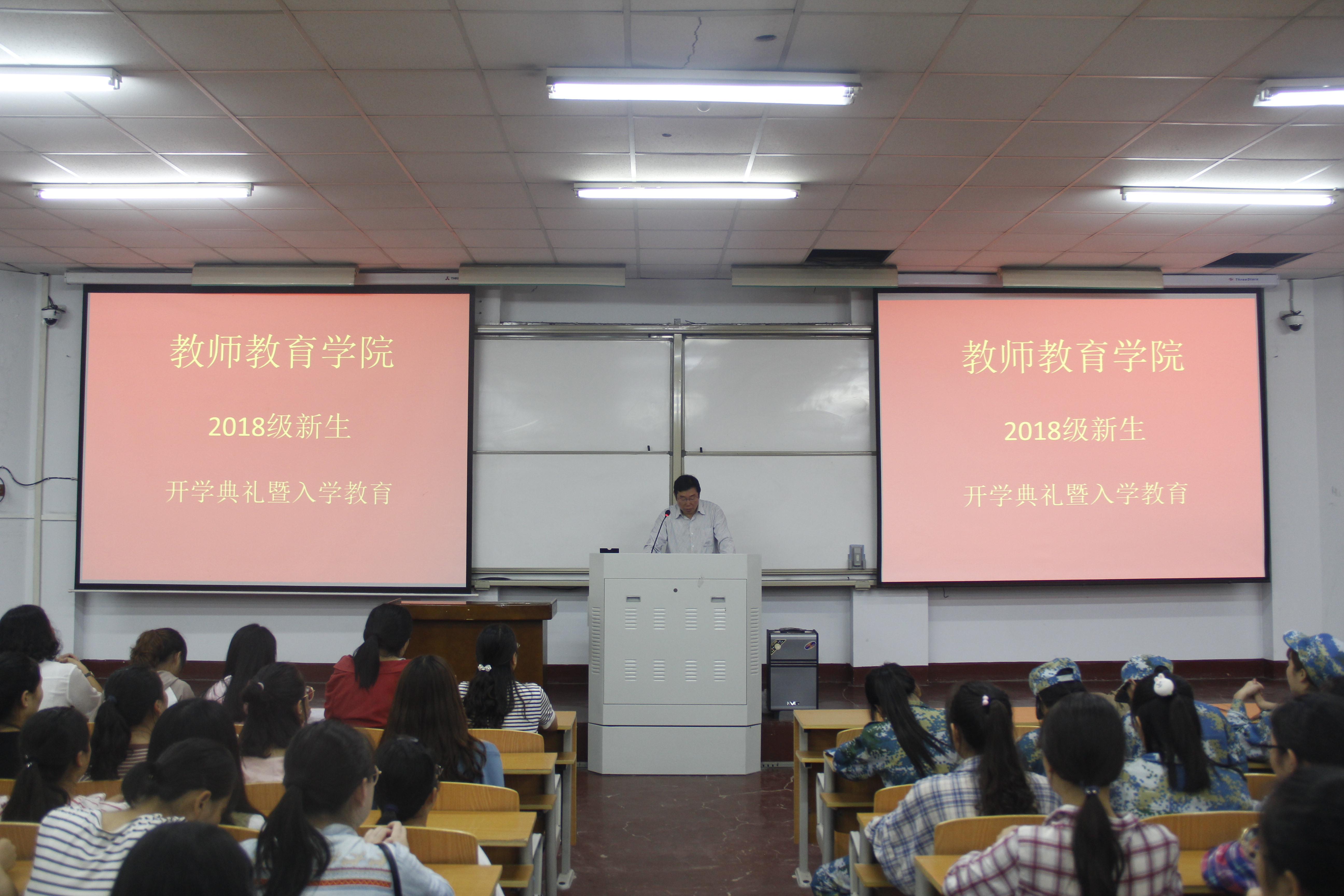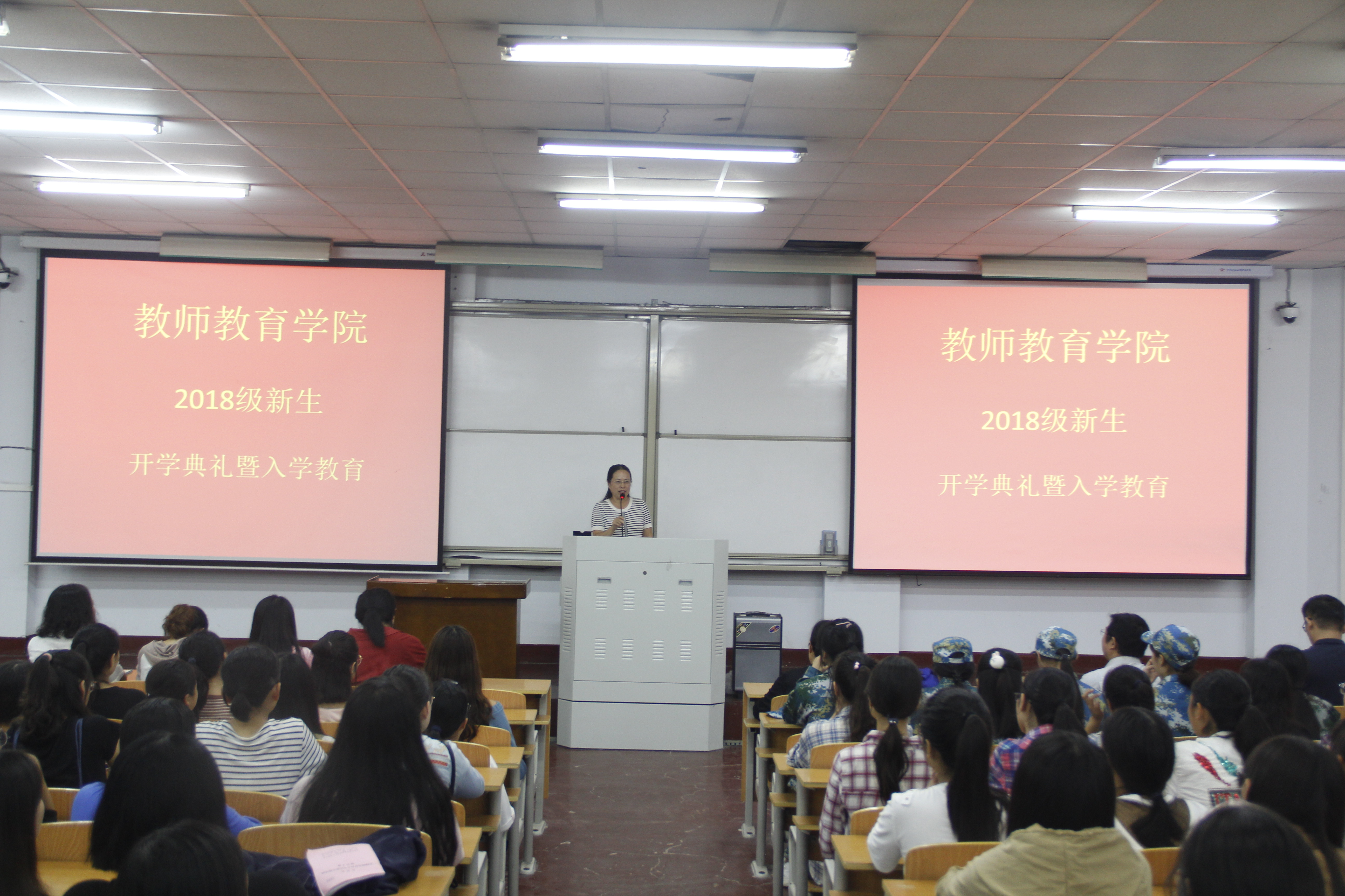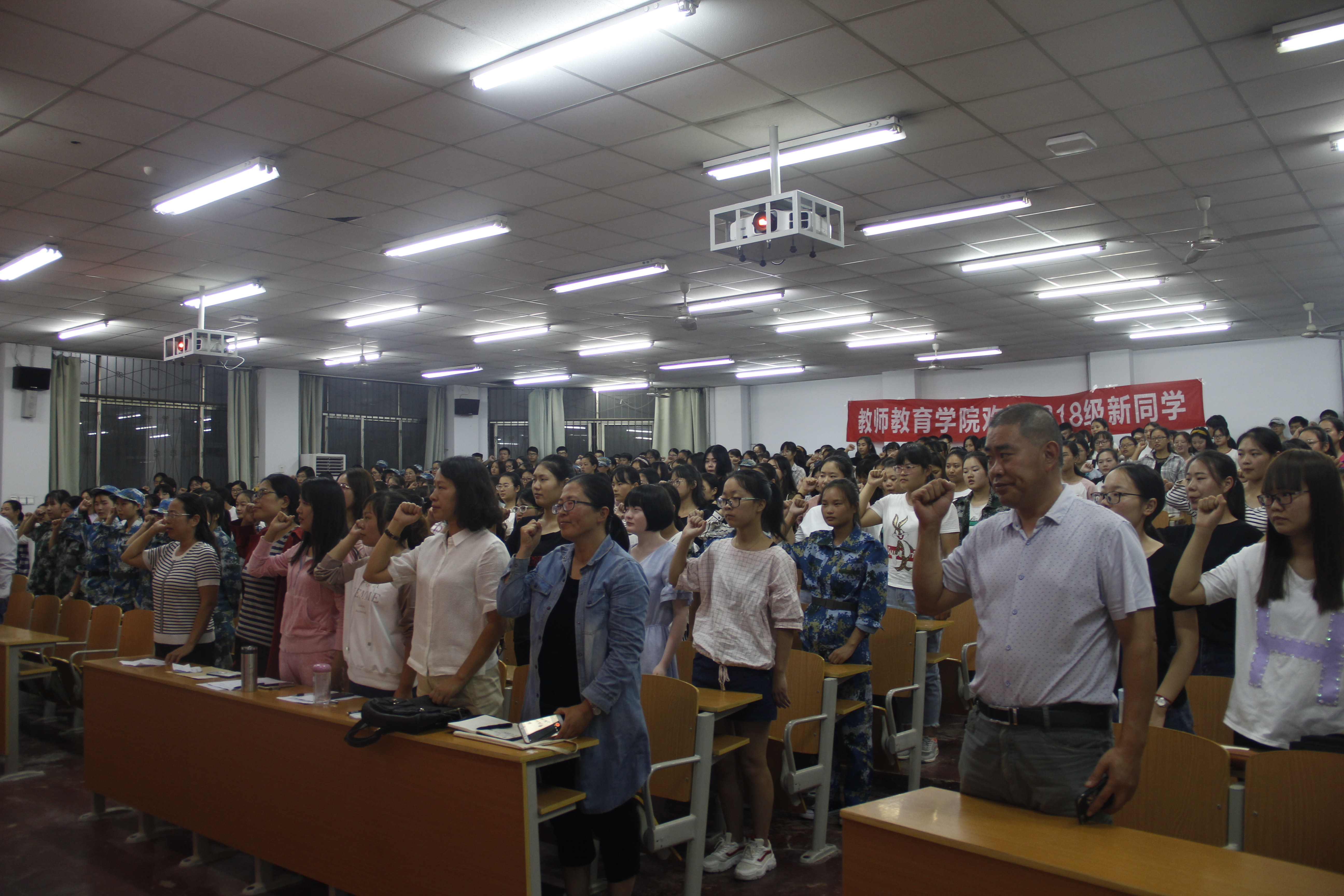 活动伊始,肖书记首先向同学们介绍了莅临现场的领导老师,并对他们的到来表示热烈欢迎。接下来,全体起立齐唱国歌,在庄严肃穆的歌声中,大家认真严肃,为本次开学典礼创造了良好的气氛。紧接着,由韩院长上台发表讲话,她首先与我院18级新生分享了我校的办学历史以及我院的师资力量,并对各专业的具体情况进行详细介绍,同学们仔细聆听,态度认真专注。随后,井院长发表讲话,他告诫同学们要刻苦学习不忘初心,坚定理想信念,在未来四年的大学生活中提高自己,实现理想。老师们的讲话振奋人心,现场掌声不断,气氛活跃热烈。紧接着,2018级小学教育二班蔡佳琪同学代表新生发言,慷慨激昂的演讲中表达了她身为商师人的荣幸与自豪、对睢阳校区温馨和谐的学习氛围的热爱,以及她对自己未来的畅想和坚持奋斗的决心。随后她带领大家共同进行教师宣誓,同学们情绪高昂,对未来的教师生涯满怀憧憬,一句句真诚的宣言令人感动。最后,刘书记发表总结讲话,他告诫大家要文明守纪,勤奋自律,树立目标,用行动让大学生活更加绚丽多彩。大会的最后,肖书记给予在座的每一位老师和同学最衷心的祝福,希望2018级新生在四年的学习生活中茁壮成长,为院争光。至此本次活动圆满结束。