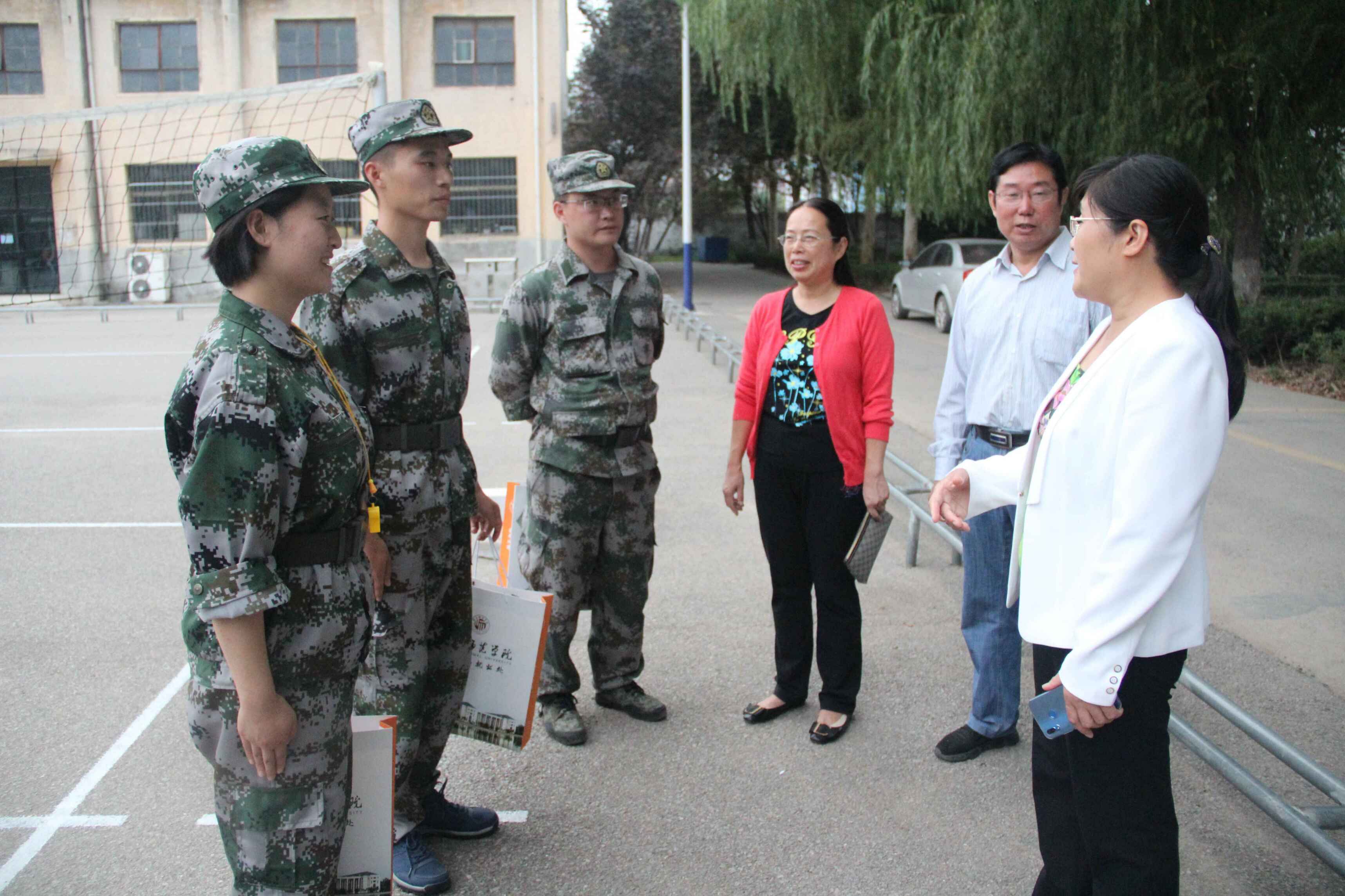 9月17日18:20,我院领导于睢阳校区10号宿舍楼前亲切慰问军训教官及新生。我院党总支书记刘骥鹏,院长韩桂玲,党总支副书记肖爱芝,团总支书记董若颖及辅导员王兴敏和吴晓寒老师都到达训练场,与教官和同学们进行了亲切交流。