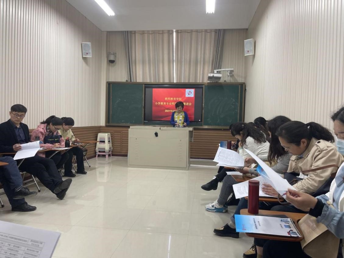 为了进一步加强专业认证工作,yabo888vip网页版登录初等教育系于2021年4月27日在汉梁楼312室召开了小学教育专业认证推进会。会议由小学教育专业学系主任冯宇红主持,副书记肖爱芝,副院长井祥贵,初等教育系副主任丁楠及全体小学教育专业教师参加了此次会议。